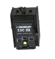 23C-III Variable Contrast lamphouse is calibrated for all major brands of variable contrast paper. Permits printing on papers at grades 0 through 5 using internal dial in and fade free blue and green additive dichroic filters. Equipped with a white light focus feature, built in power supply, and 6×9 cm mixing chamber.